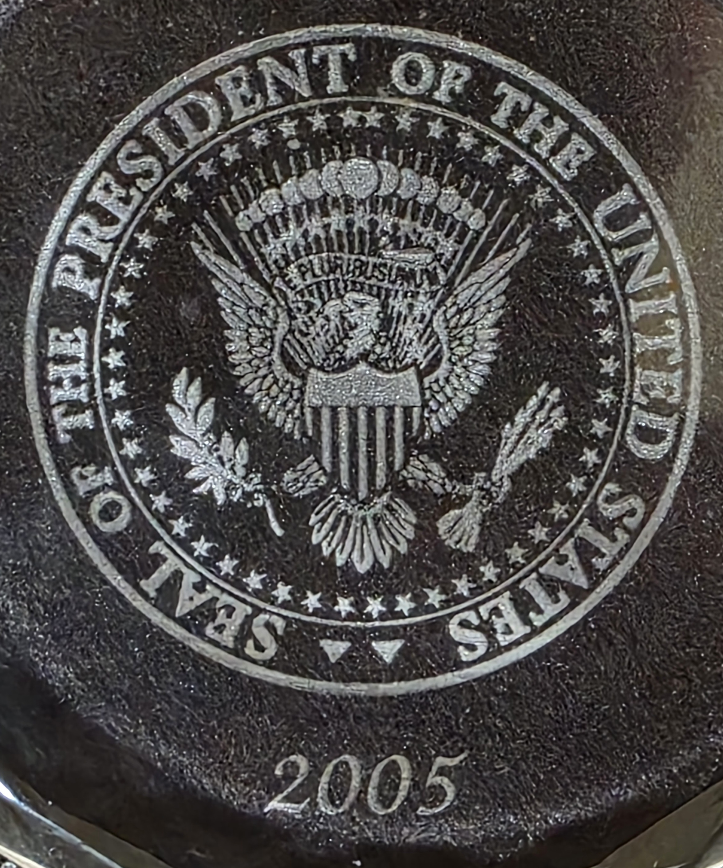 Seal on the front and the President's engraved signature on the bar.