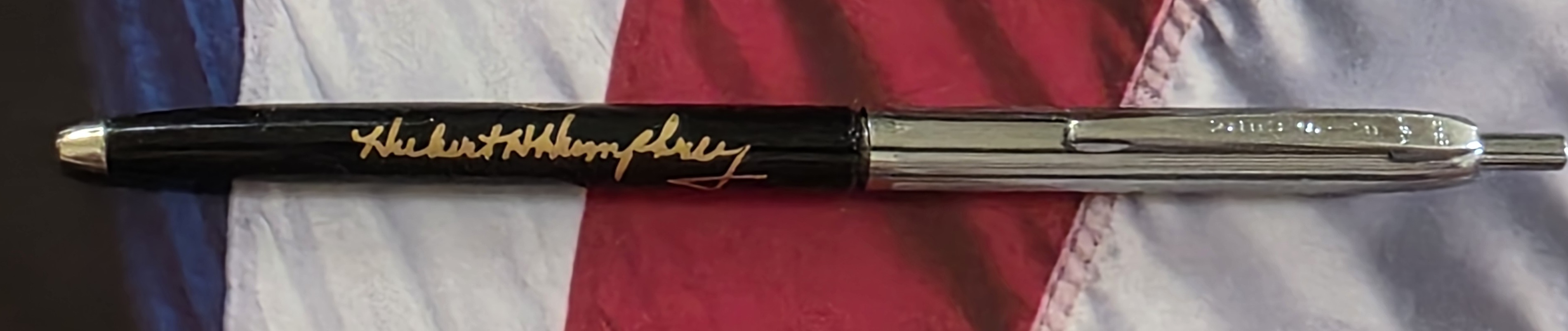 This is a beautiful original Hubert Horatio Humphrey Vice Presidential Pen with his signature and the old Vice Presidential Seal on it. $13.50
