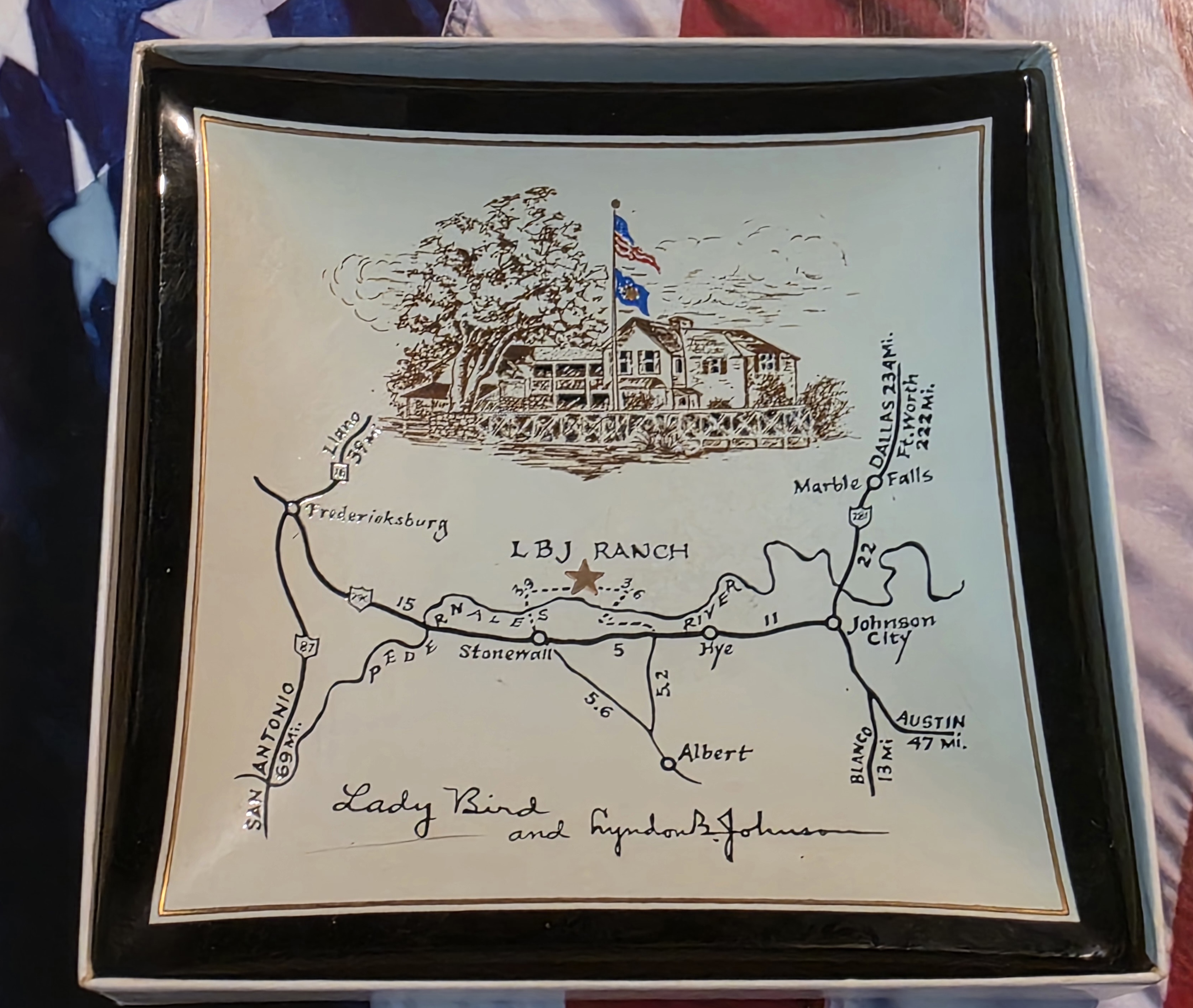 tray from The LBJ Ranch. This is a vintage item so the box show staining however