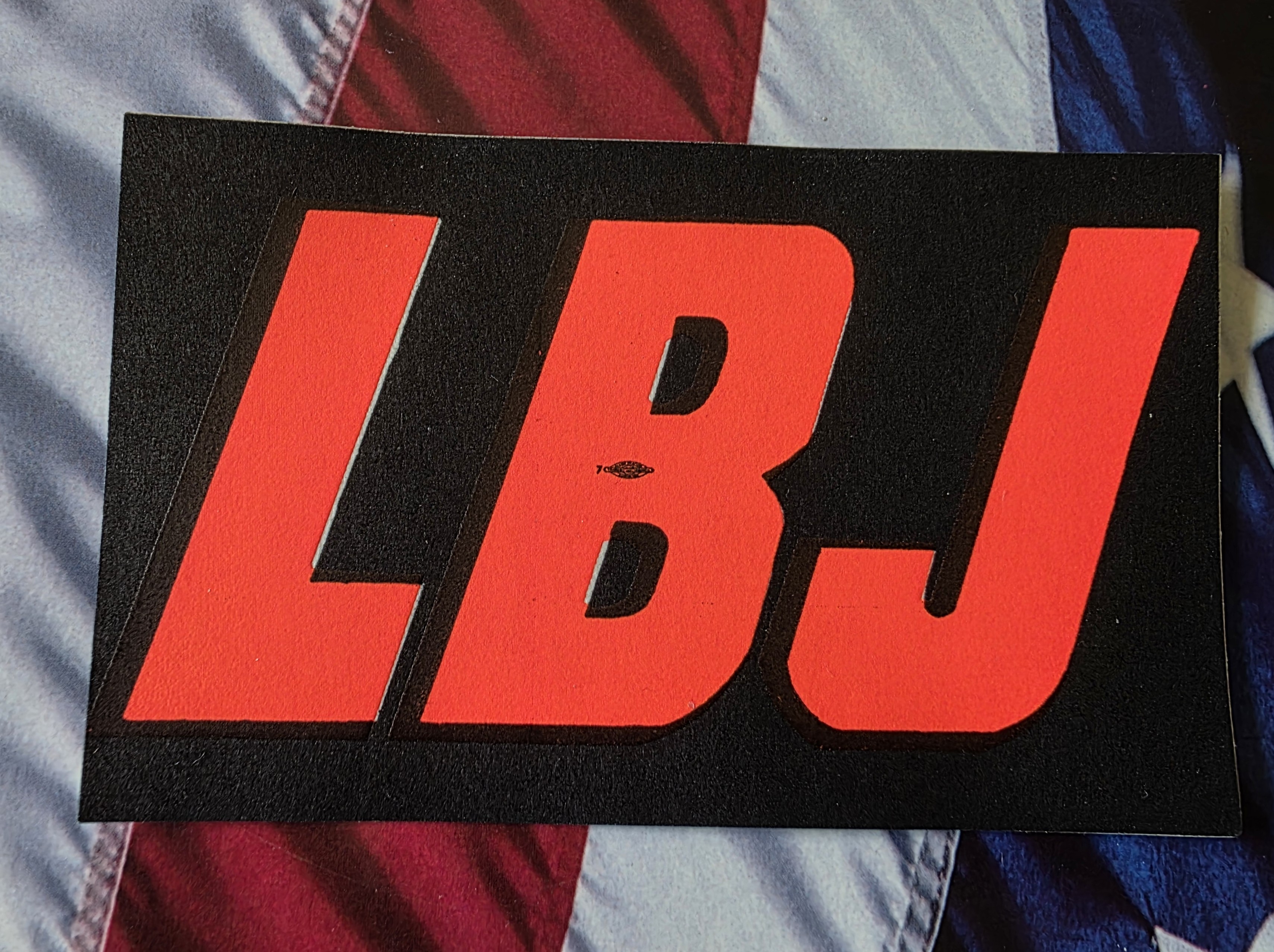 LBJ Bumper Sticker in blue or black.