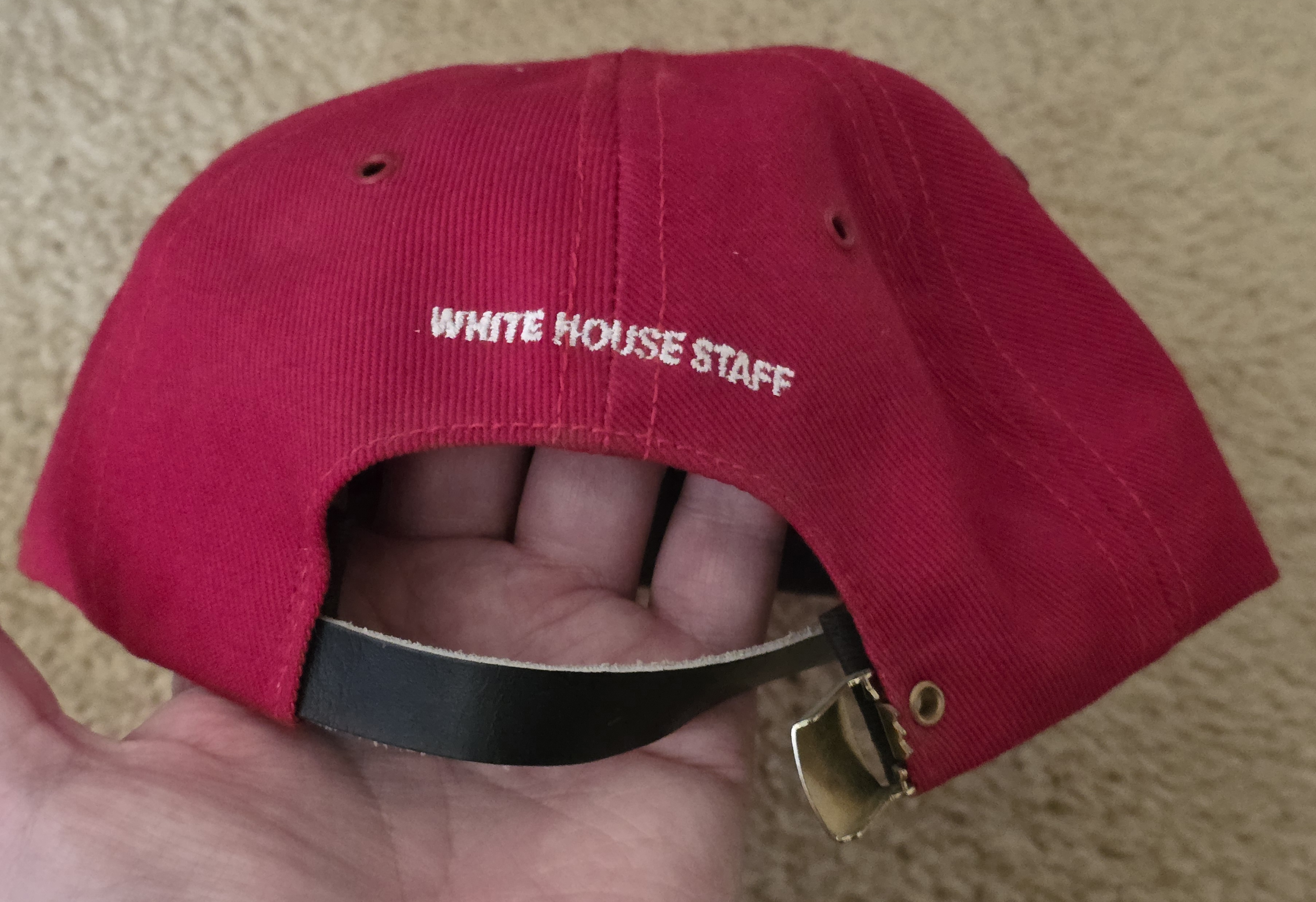 I recently picked up a large collection of Presidential Caps from the estate of a former White House Staffer. This one is in MAGA Red. It is embroidered with The full color Presidential Seal on the front and the words White House Staff on The Back. This cap looks like it has never been warn please see photos. $90.00