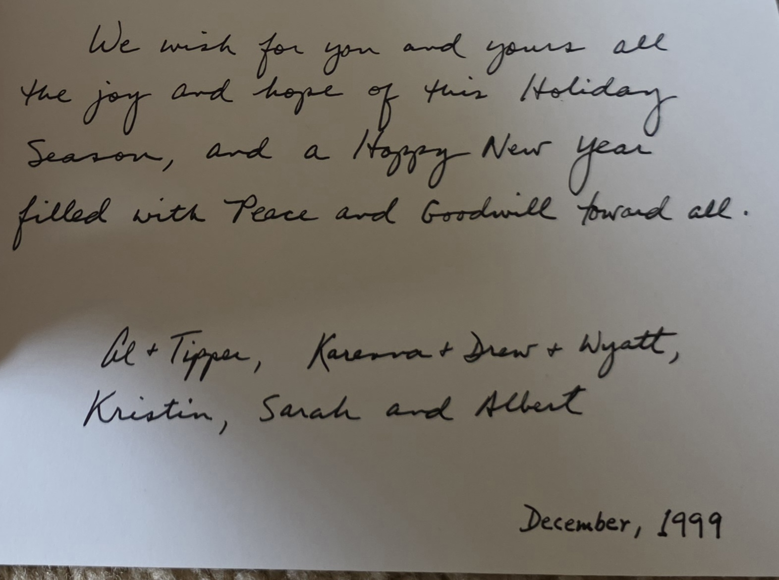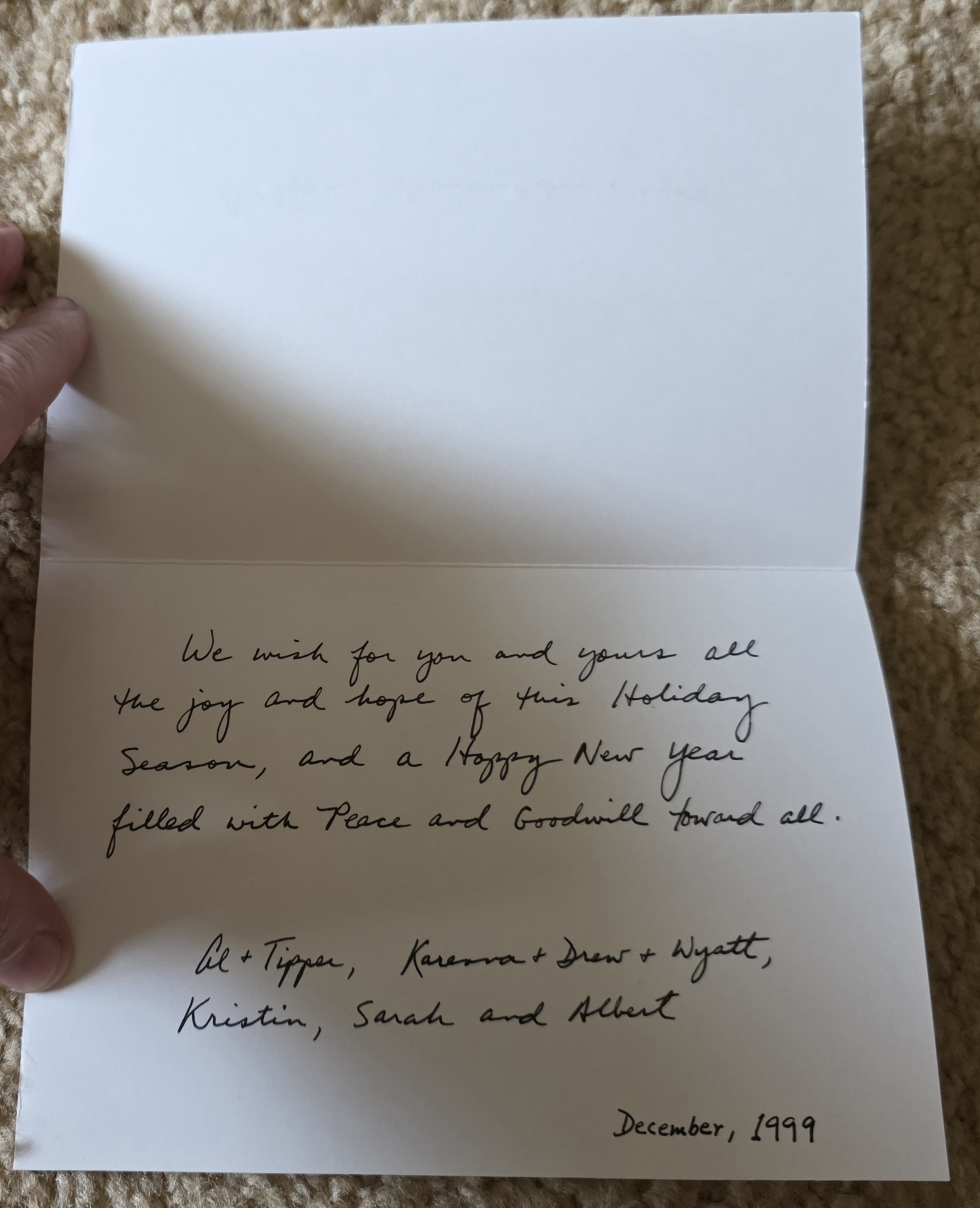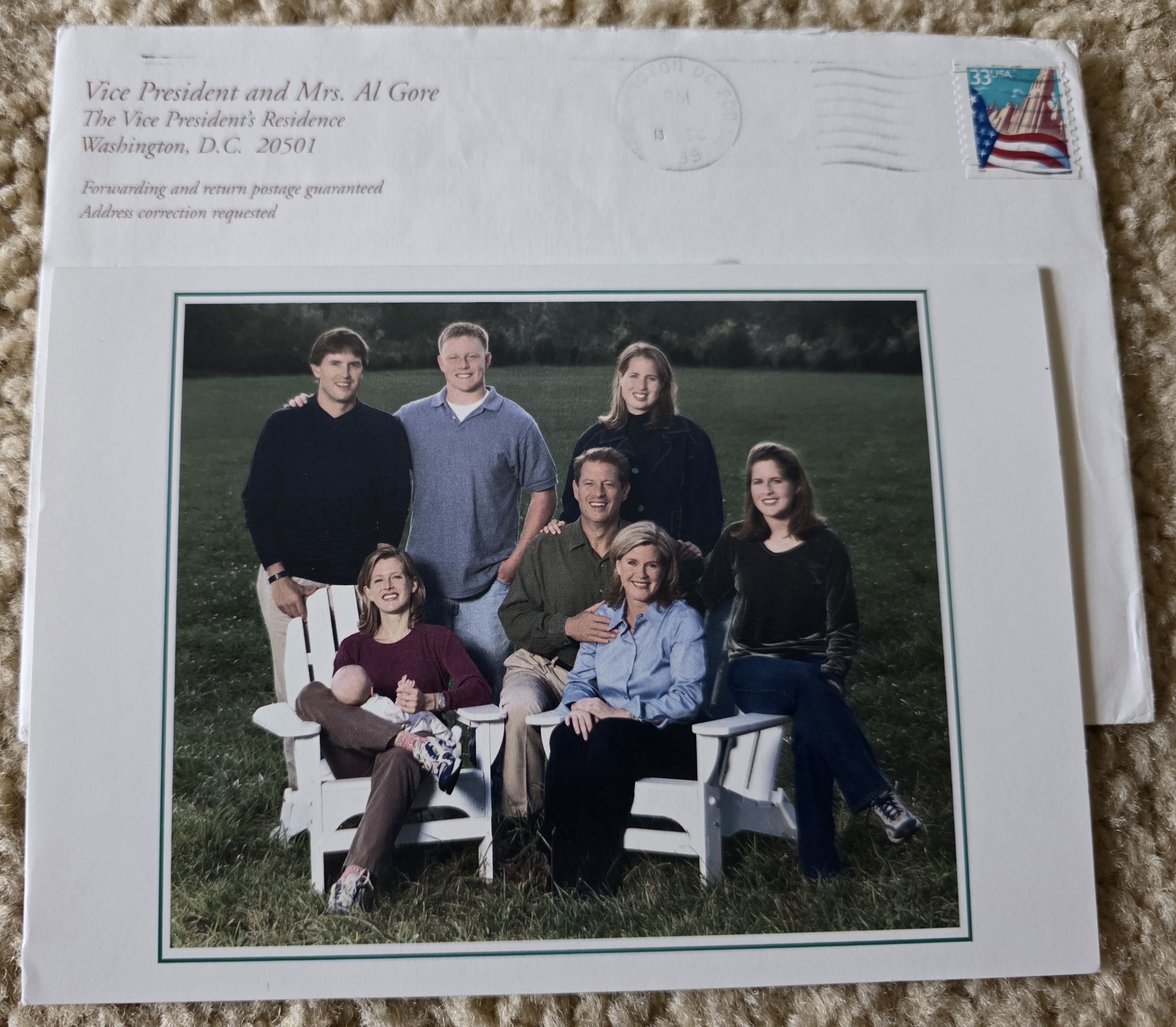 This is a nice official Vice President Card from then Vice President Gore and his family. The VP card has been addressed and was mailed out by The Vice Presidents Office so while the card is clean the card has been addressed and mailed. $7.50