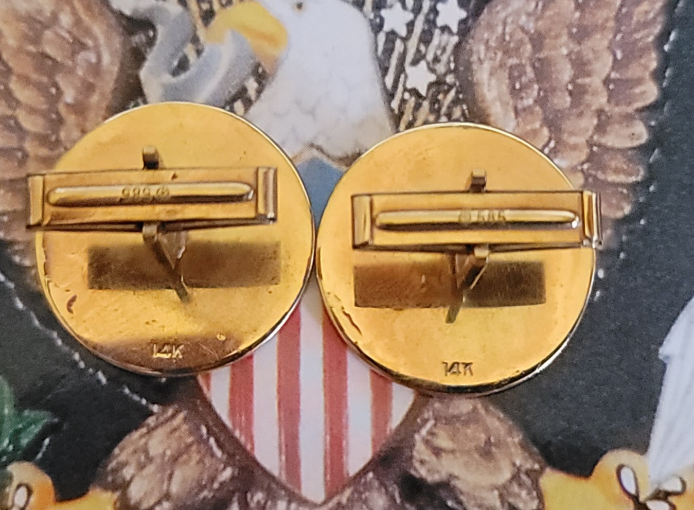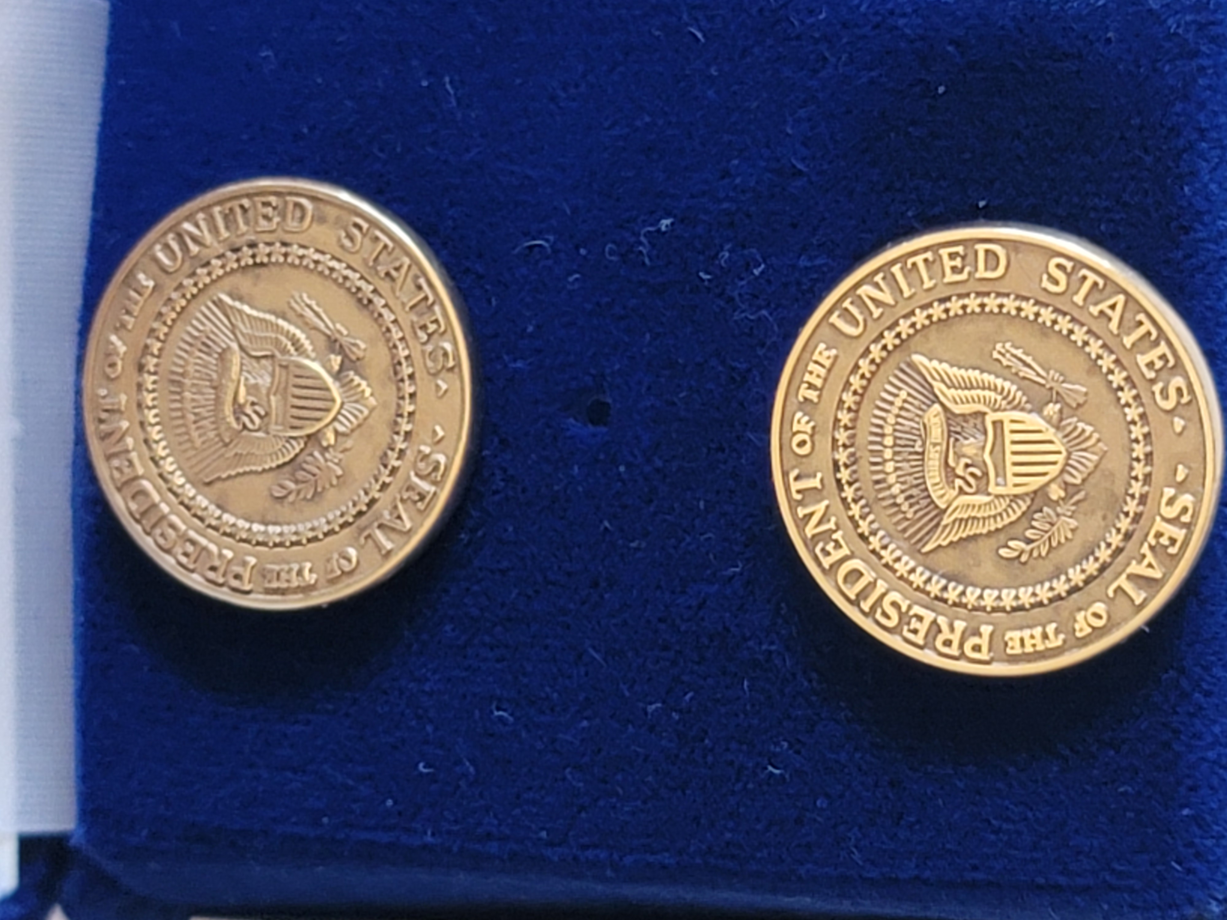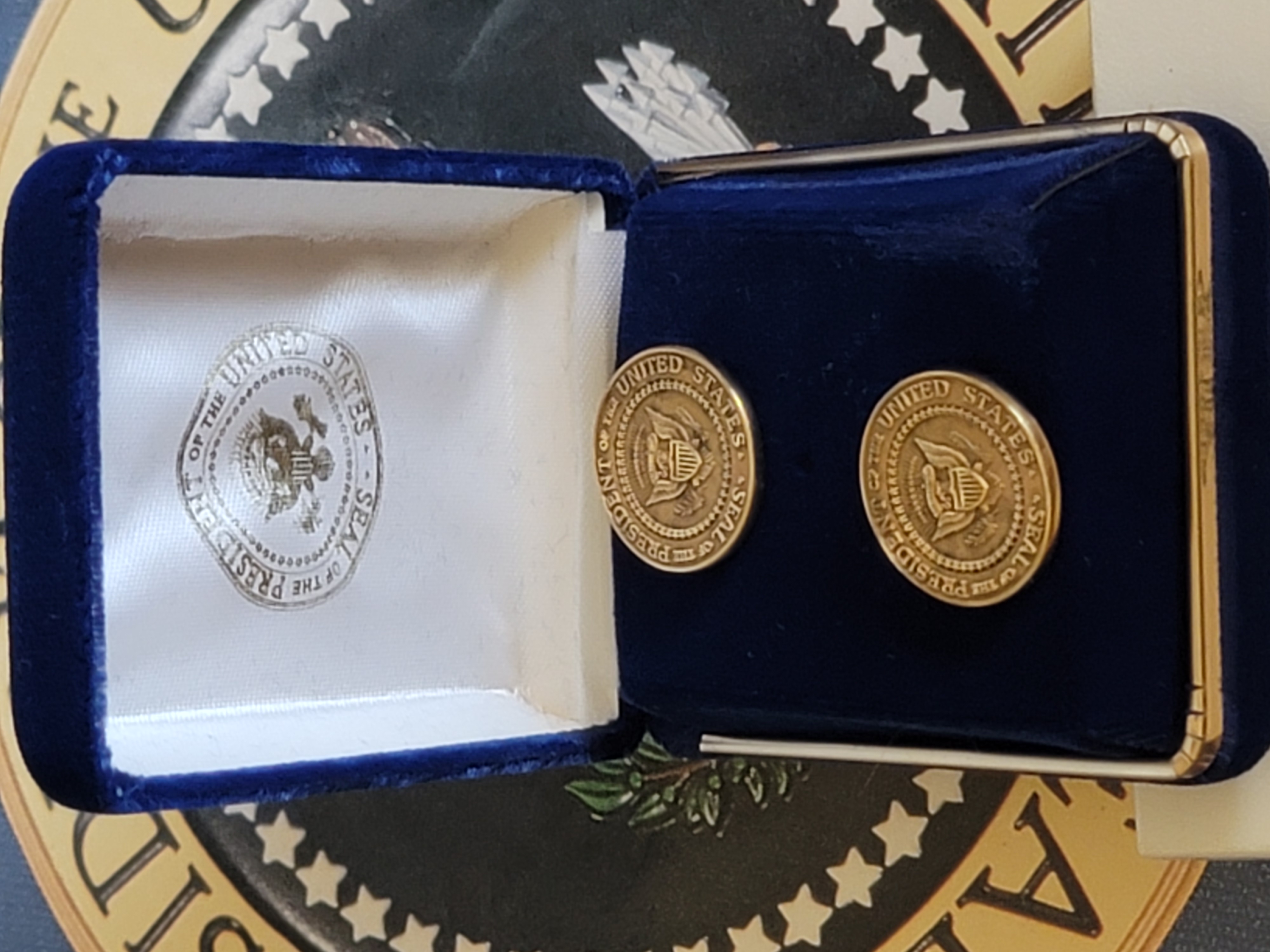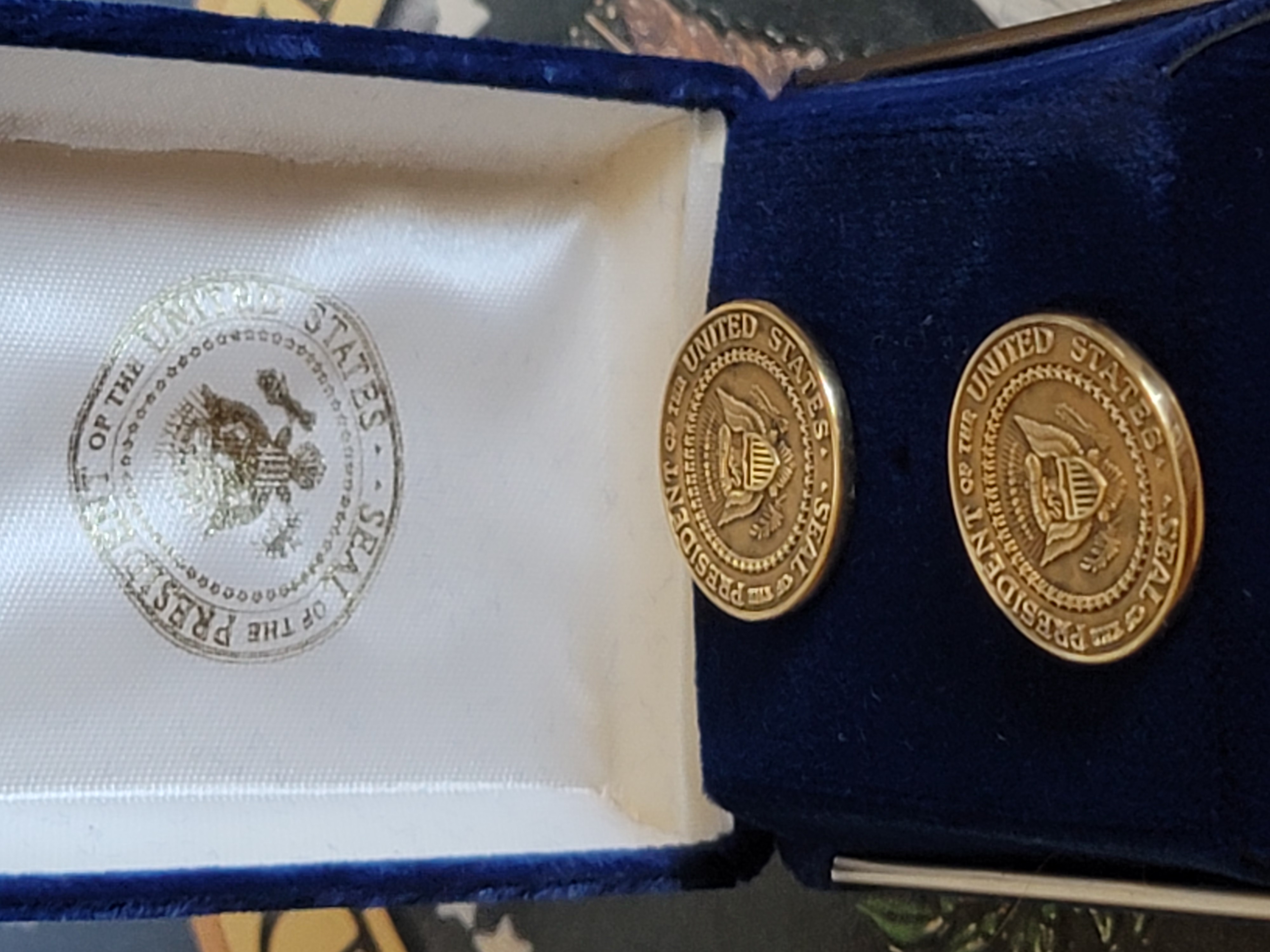 This is extremely rare and hard to find set of genuine 14k gold VIP cufflinks from the Clinton White House. These are one of the most sought after of all Presidential gifts solid gold cufflinks. These VIP Presidential gift cufflinks are from President Clinton and the come in their original Presentation / display box and outer box both of which has The Presidential Seal on them. These cufflinks are marked 14k on the back and the findings are marked also marked 585 for 14k this is important because a lot of the lesser Presidential cufflinks are marked 14k but the findings. $3,000