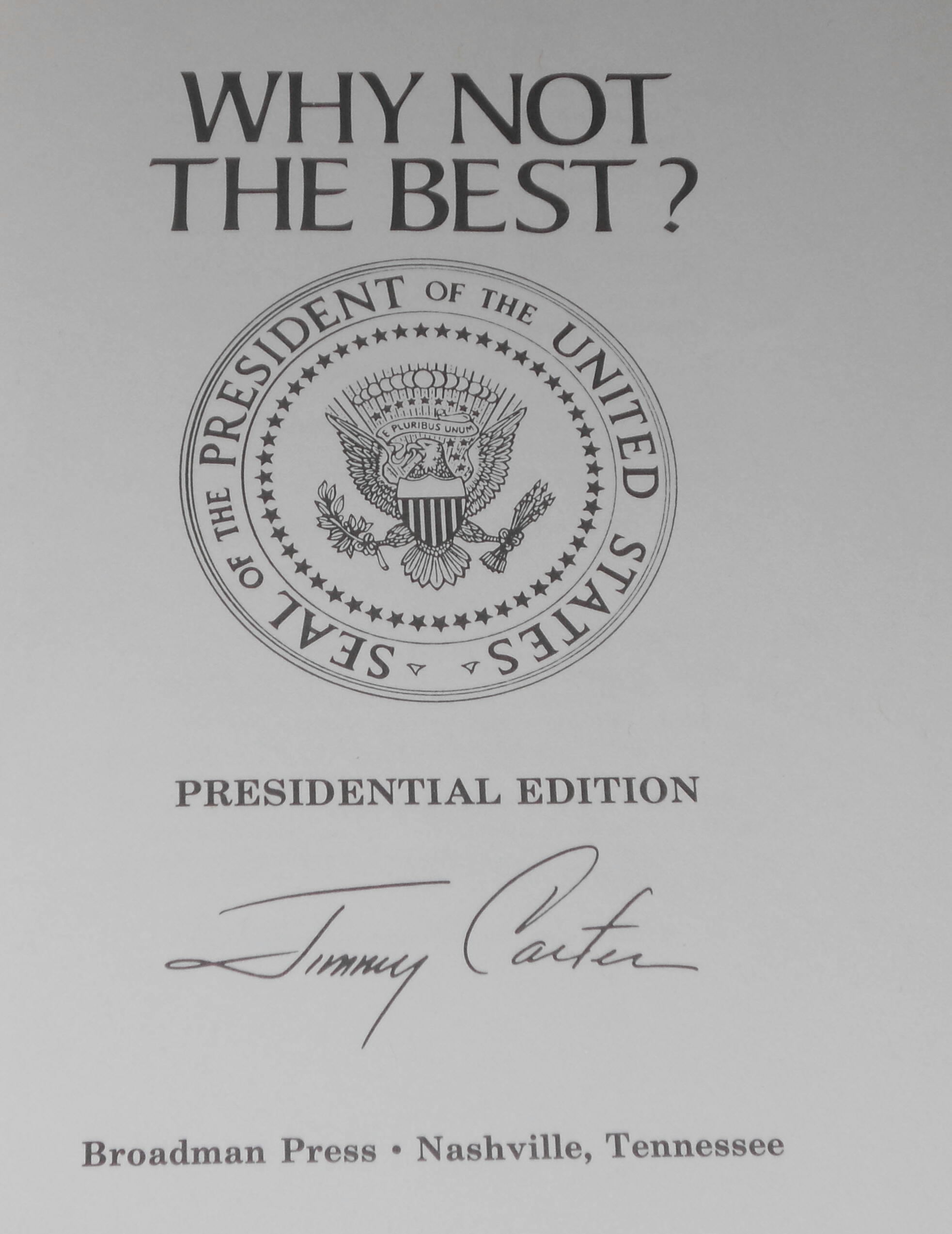 This is the rare Presidential edition of Carter's most famous book Why Not The Best. This book has been hand signed by President Carter . $250.00