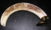 This is a beautiful scrimshawed bores tusk bearing an scene of Lions hunting Cape Buffalo. The tusk stands almost 4 1/2" tall by 8" wide.