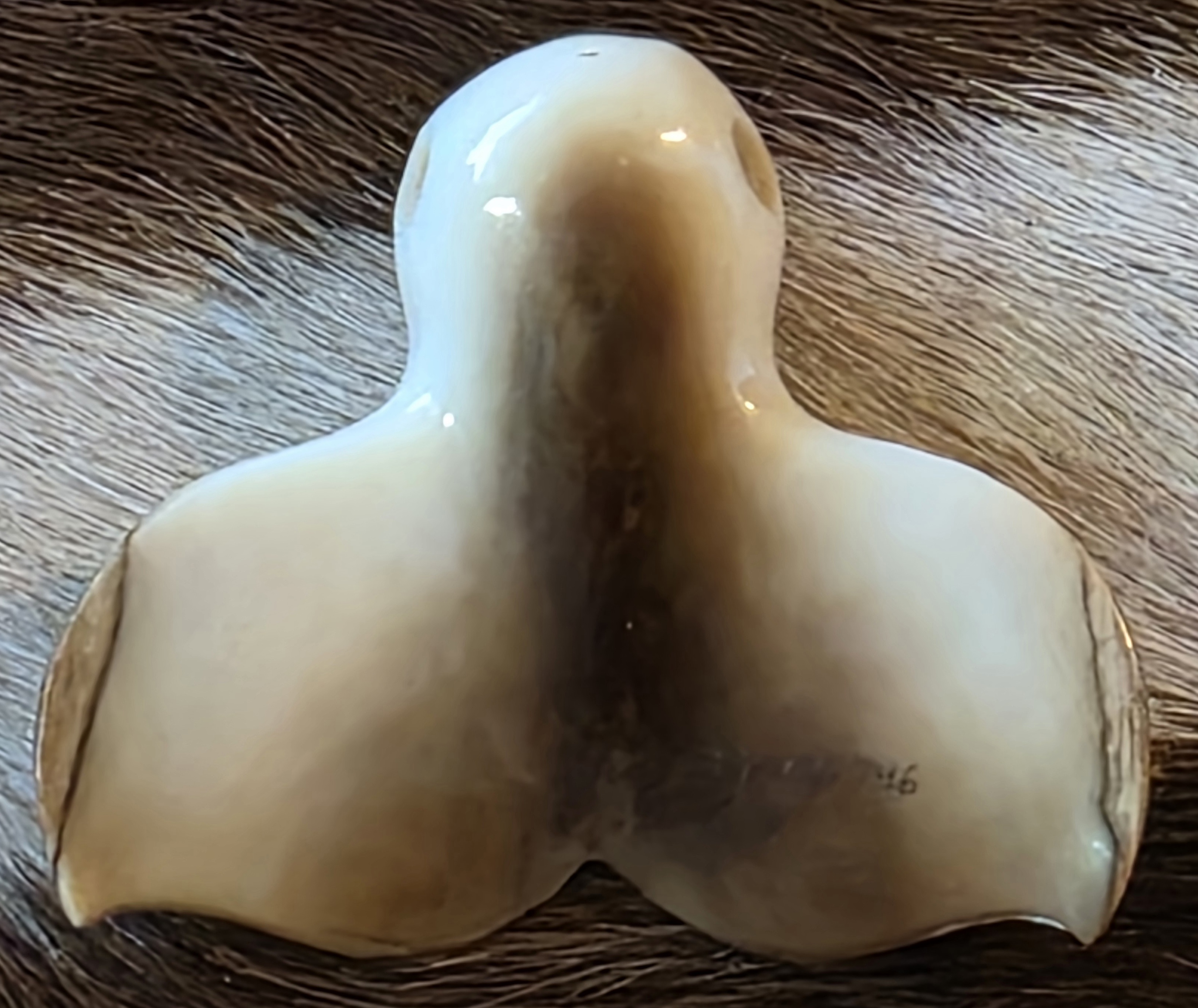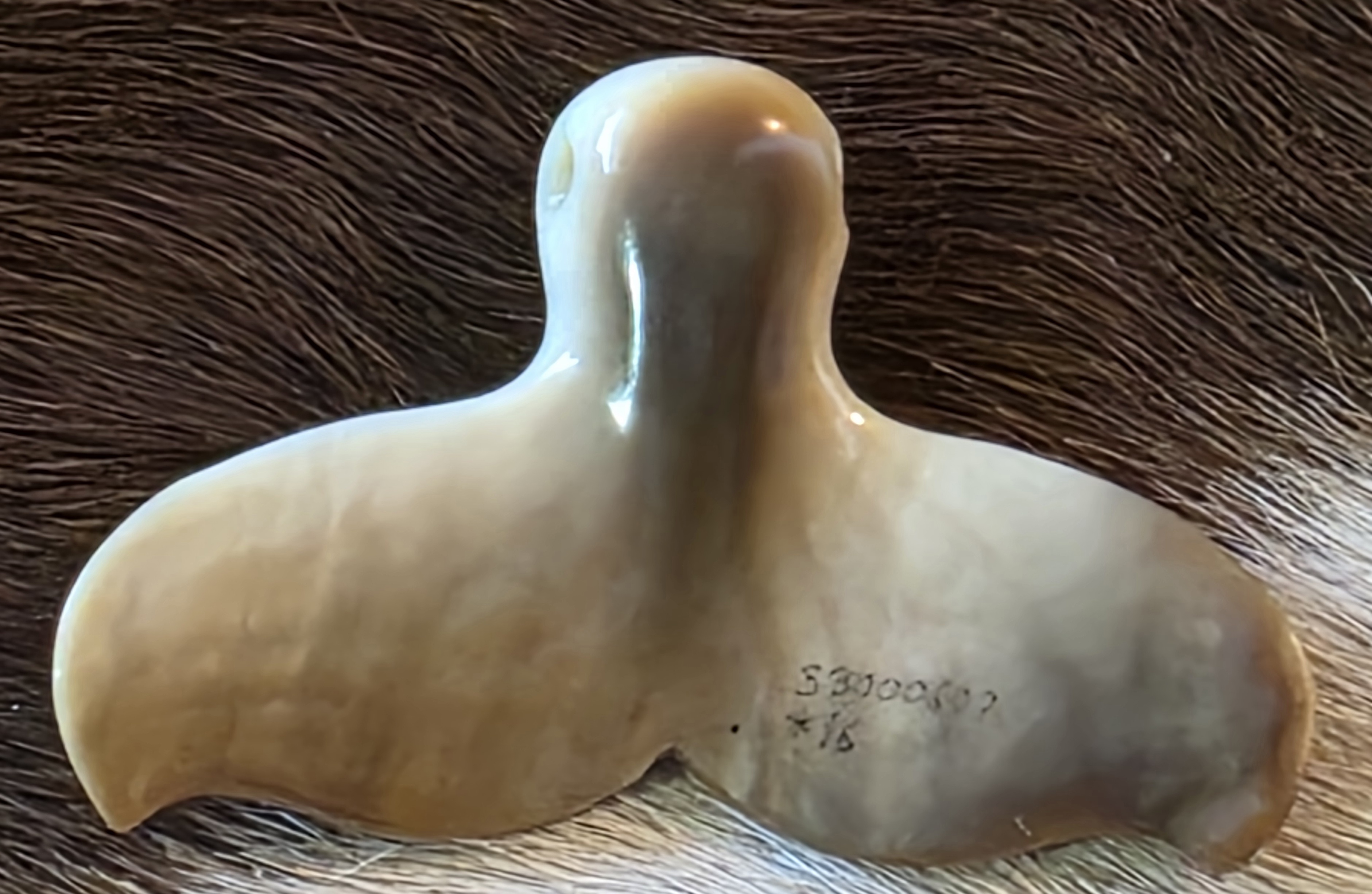 TThis is a nice vintage hand carved pendant shaped like a whale’s tail from Hawaii in the eighties. Penny shown for size only.