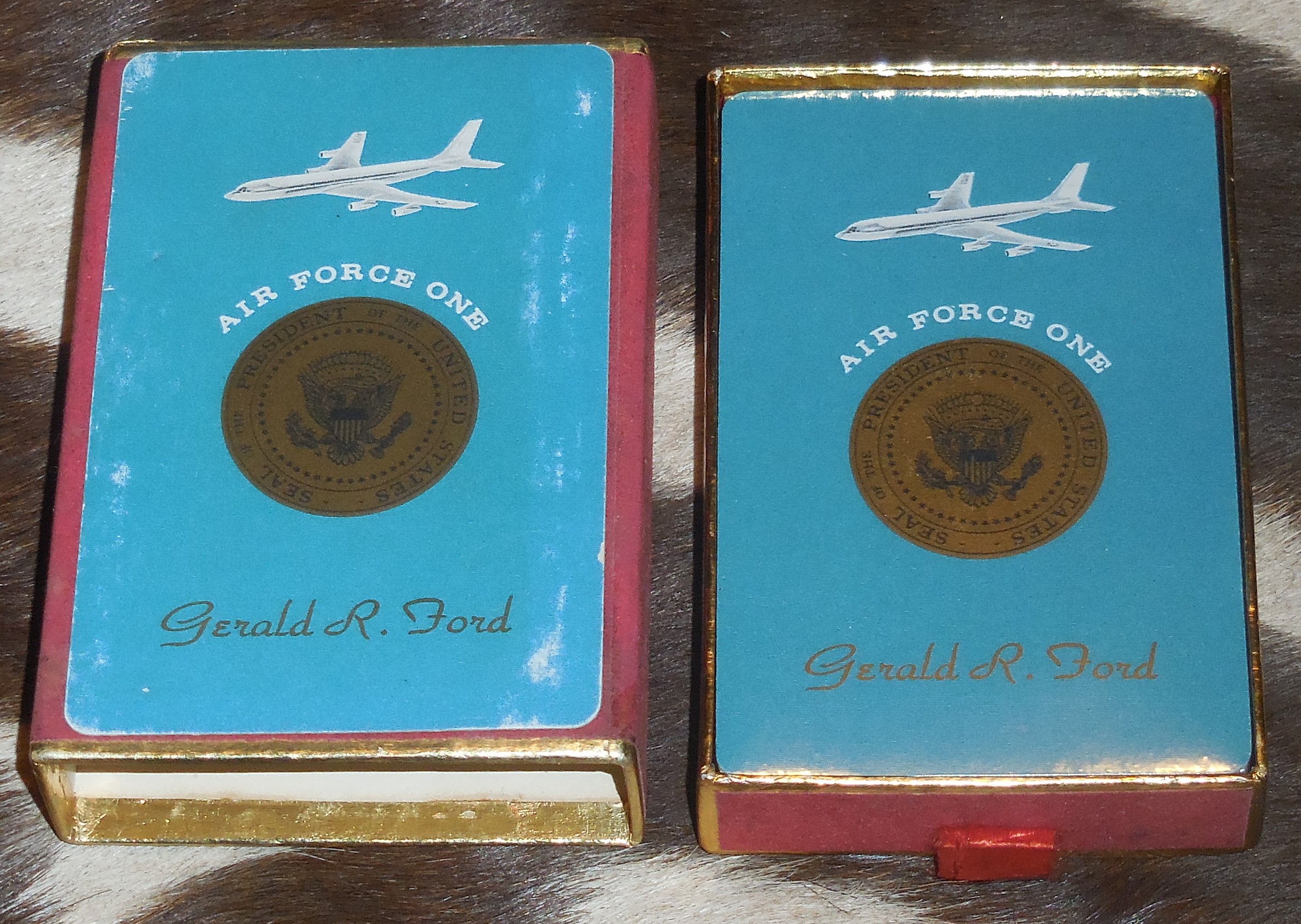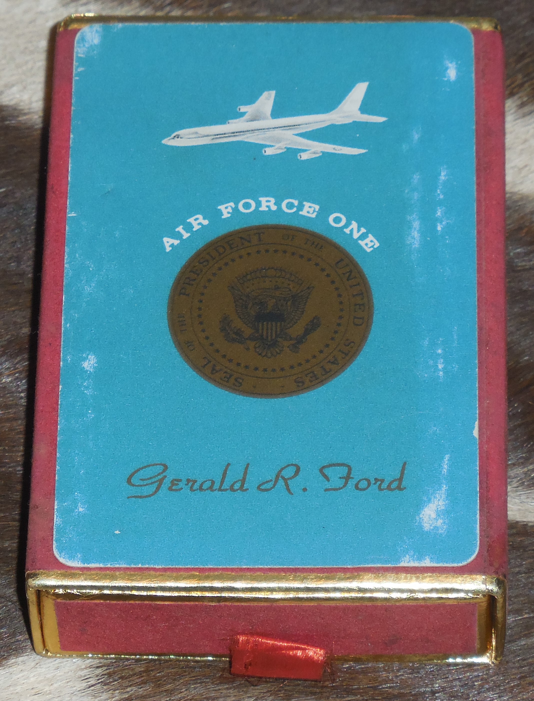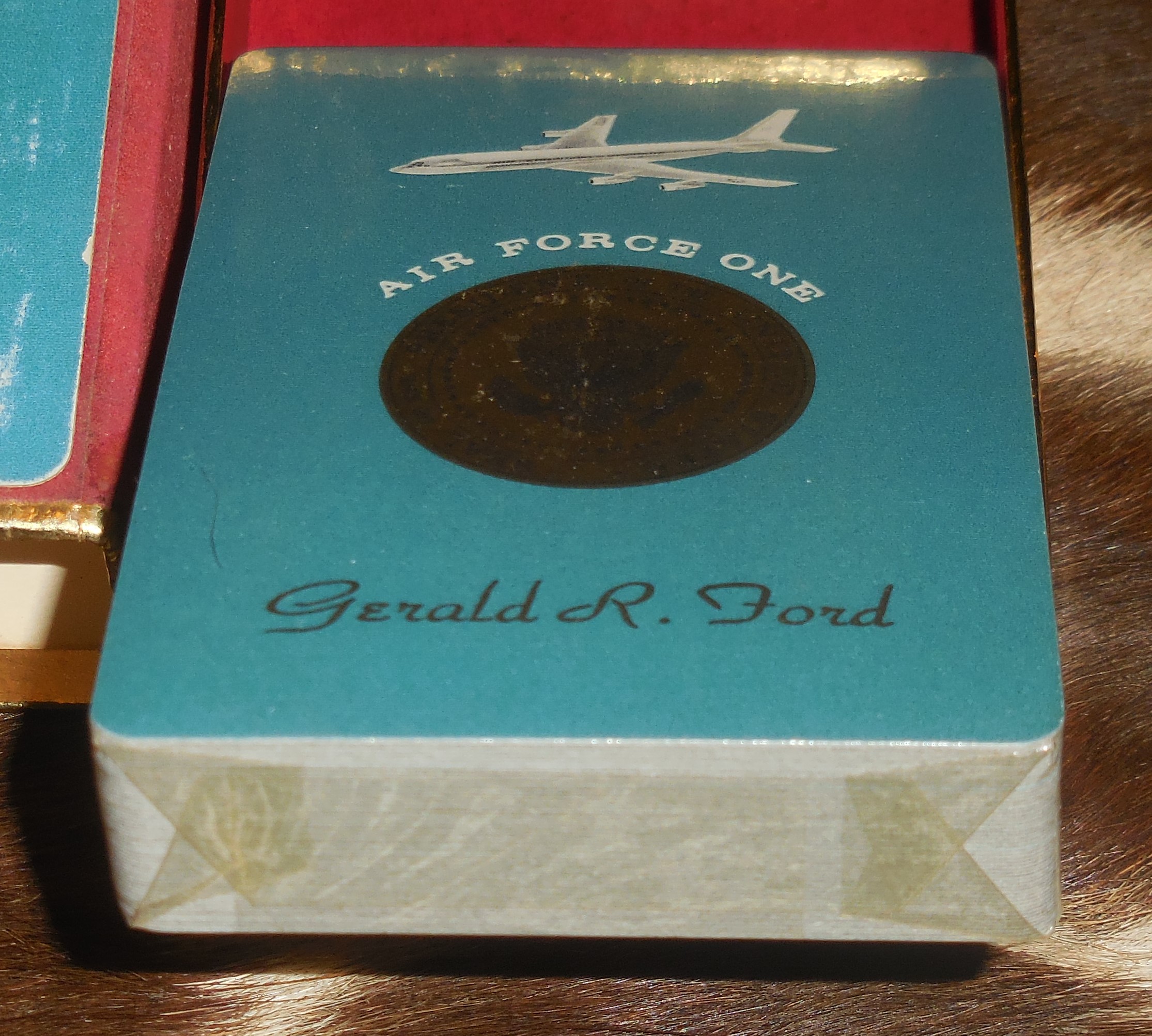This is a rare original Air Force One unused Single Deck of Cards from Ford's term in office. The outer box show signs of shelf ware but cards themselves are still unopened and unused and in great condition. $50.00