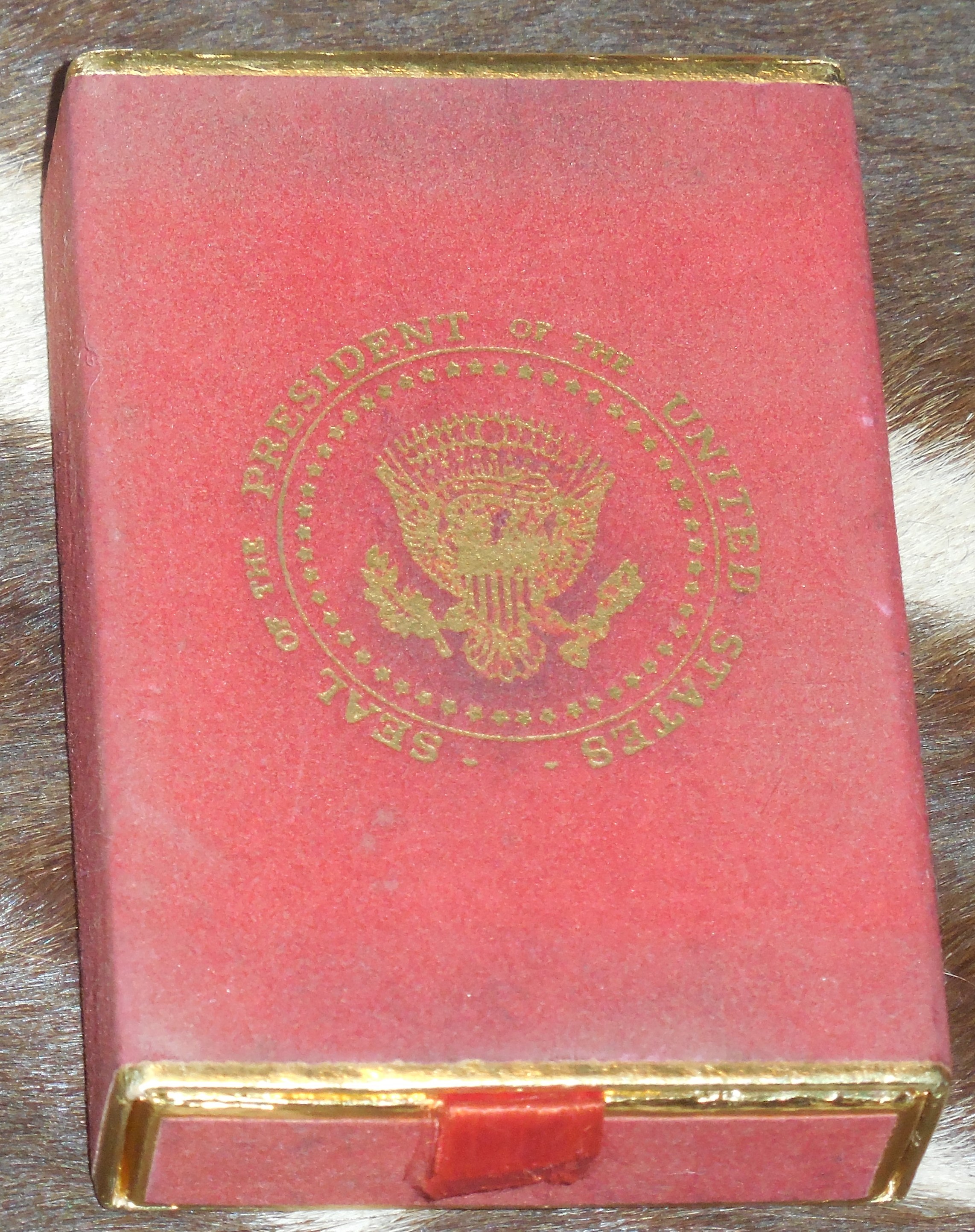 This is a rare original Air Force One unused Single Deck of Cards from Ford's term in office. The outer box is in very nice condition and cards themselves are still unopened and unused and in great condition. $70.00