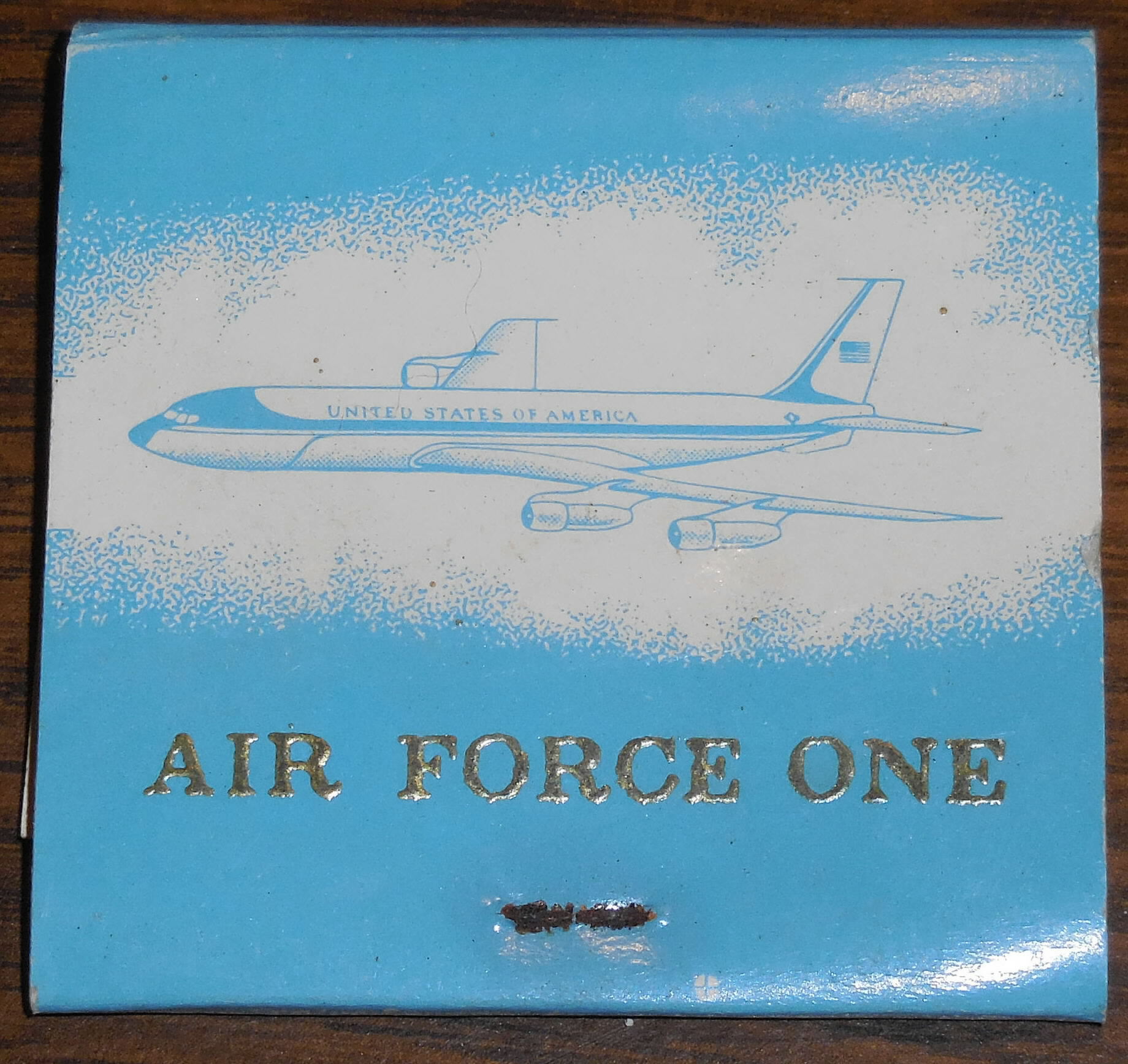 This is full book of matches. These are the oldest matchbooks I have seen foe 26000 the first Jet used exclusively to be the Presidential Aircraft. This was the same jet first just by President Kennedy and the same Jet that latter flew his body back to Washington and on which LBJ was sworn in as President so its a important peace of American history. The biggest difference in this matchbook from the latter version is it does not have the word Aboard before Air Force One which was a tradition used on Air Force One matchbooks started during the Nixon administration. This matchbook in unused. $25.00