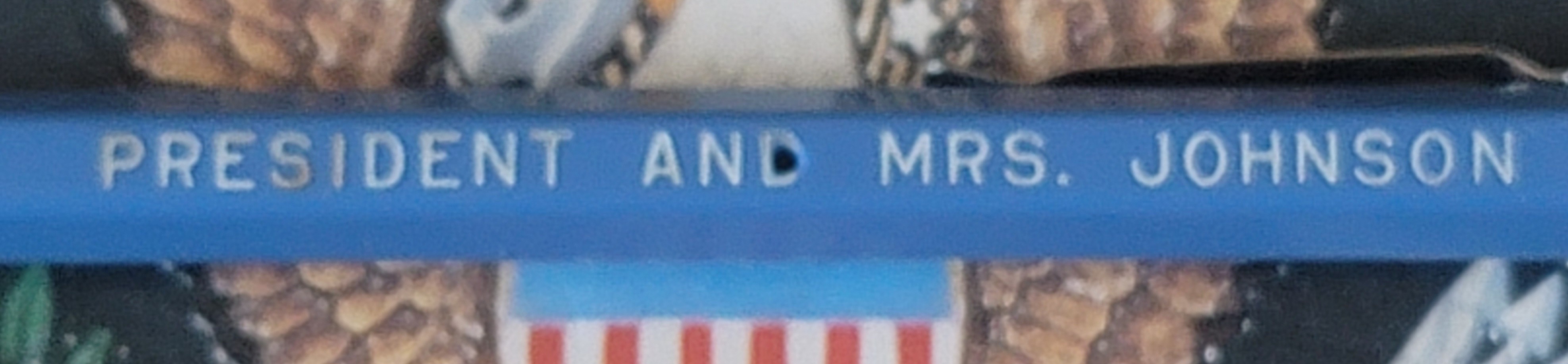 is a blue bic pen and has the words "The President and Mrs. Johnson" on the