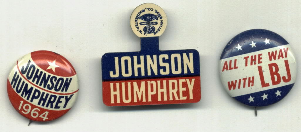 Two LBJ pinbacks and one pocket badge. $15.00